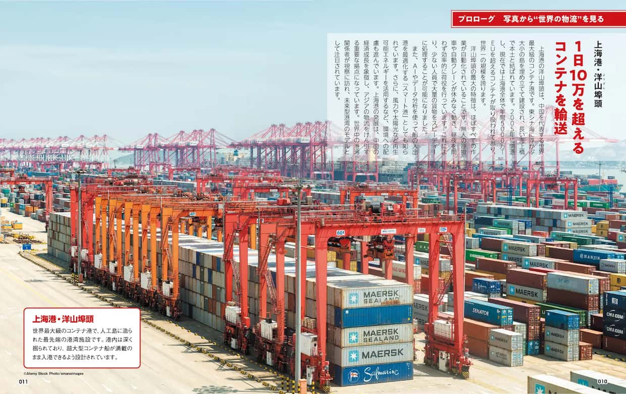 誌面は、写真で見る世界の物流、基礎から学ぶ物流の機能、地図で読み解く世界の力関係、日本の物流事情など4章構成。複雑な輸送ルートやサプライチェーンをビジュアル中心で解説し、初心者から関係者まで幅広い読者が直感的に理解できる内容としている。