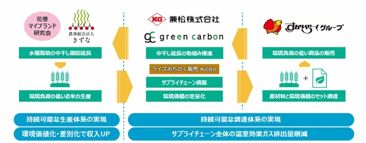 これを受け、兼松は、カーボンクレジット事業を手がけるGreen Carbon(東京都千代田区)と連携して、カーボンインセットによる環境配慮米の販売に向けた準備を進めていた。