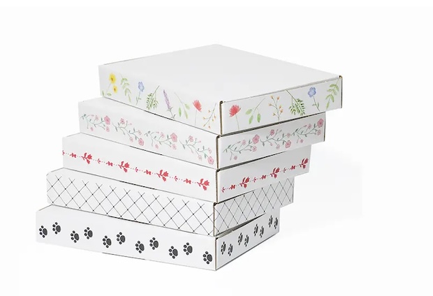 サービス・商品アースダンボール(埼玉県伊奈町)は12日、ゆうパケット対応の新デザイン段ボール箱5種類を11月12日より販売開始したと発表した。新商品は「花のフレーム(水彩)」をはじめ、「ピンク」「レッド」「キルティング」「猫の足あと」など多様なデザインをそろえる。