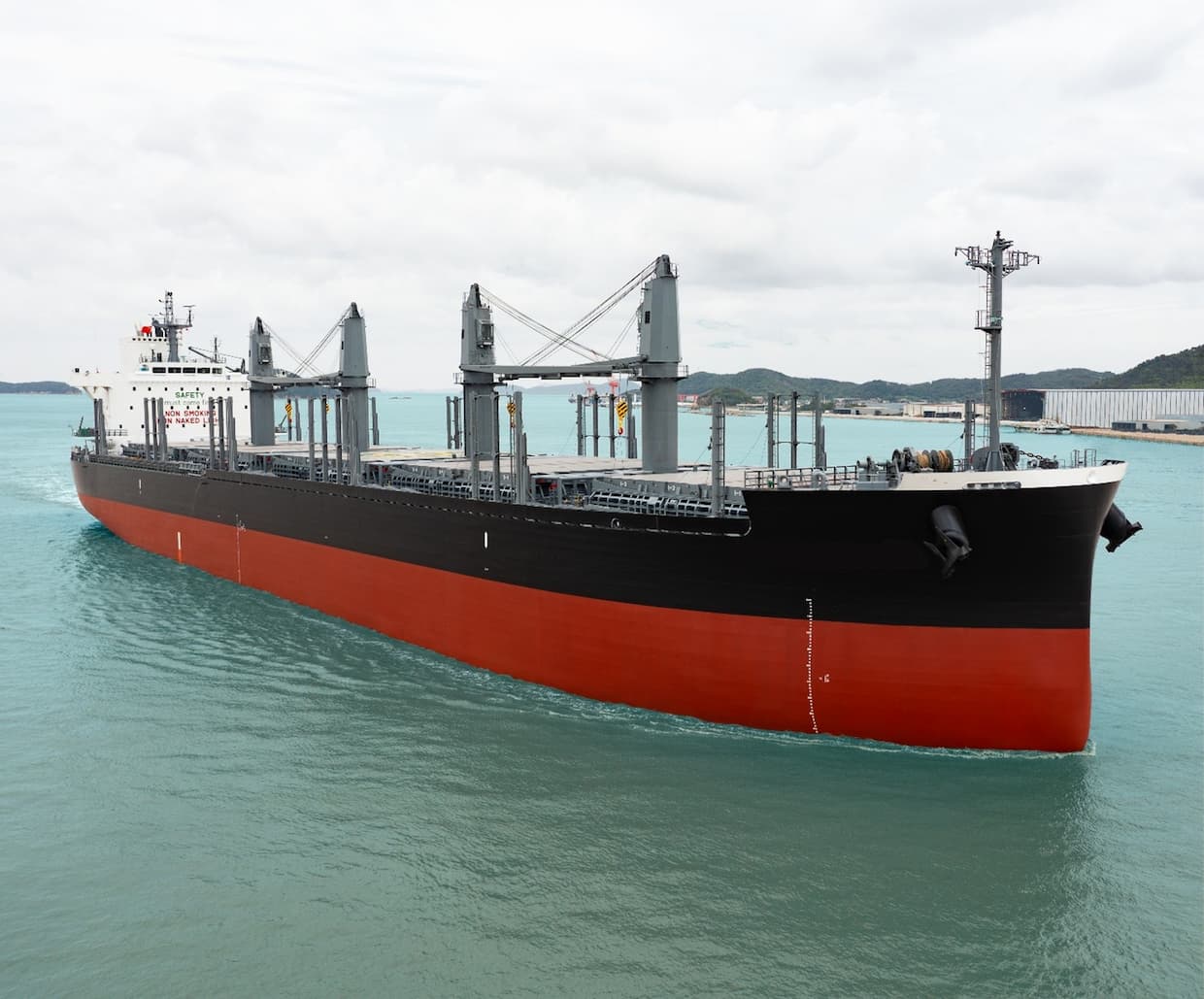 船体は全長約180メートル、幅32.2メートル、型深さ15.4メートル、総トン数は約2万6700。多目的性と環境性能を両立した設計により、多様化する海上輸送ニーズへの対応力を高め、効率的なバルクトレードの実現に寄与する。