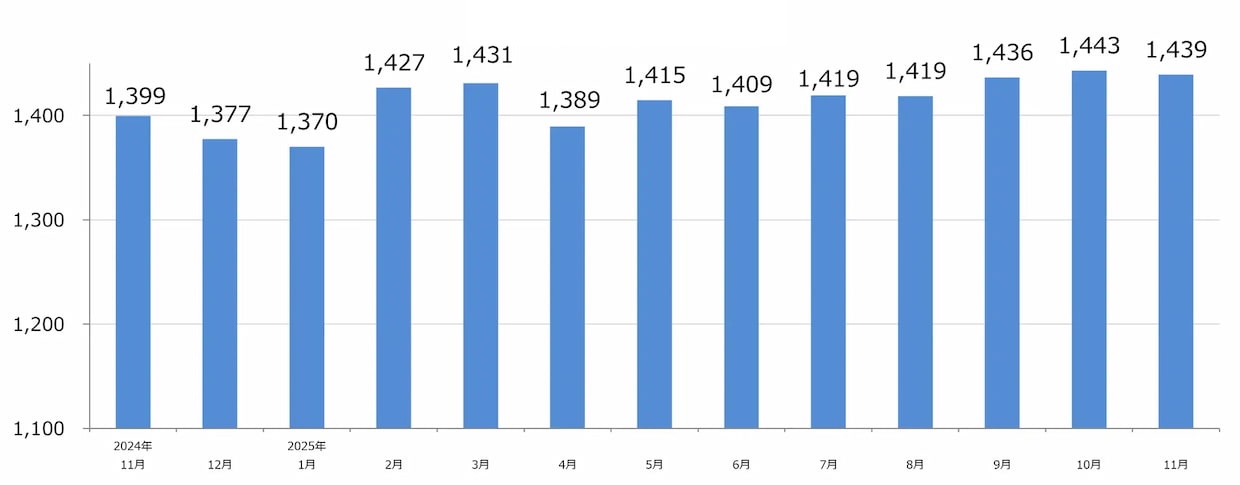 調査・データ主婦向け求人サイト「しゅふJOB」を運営するビースタイルメディア(東京都新宿区)は17日、同サイトに掲載された求人情報に基づく11月のパート・アルバイト平均時給を公表した。全国・全職種平均時給は1259円で前月比12円増、前年同月比56円増だった。
