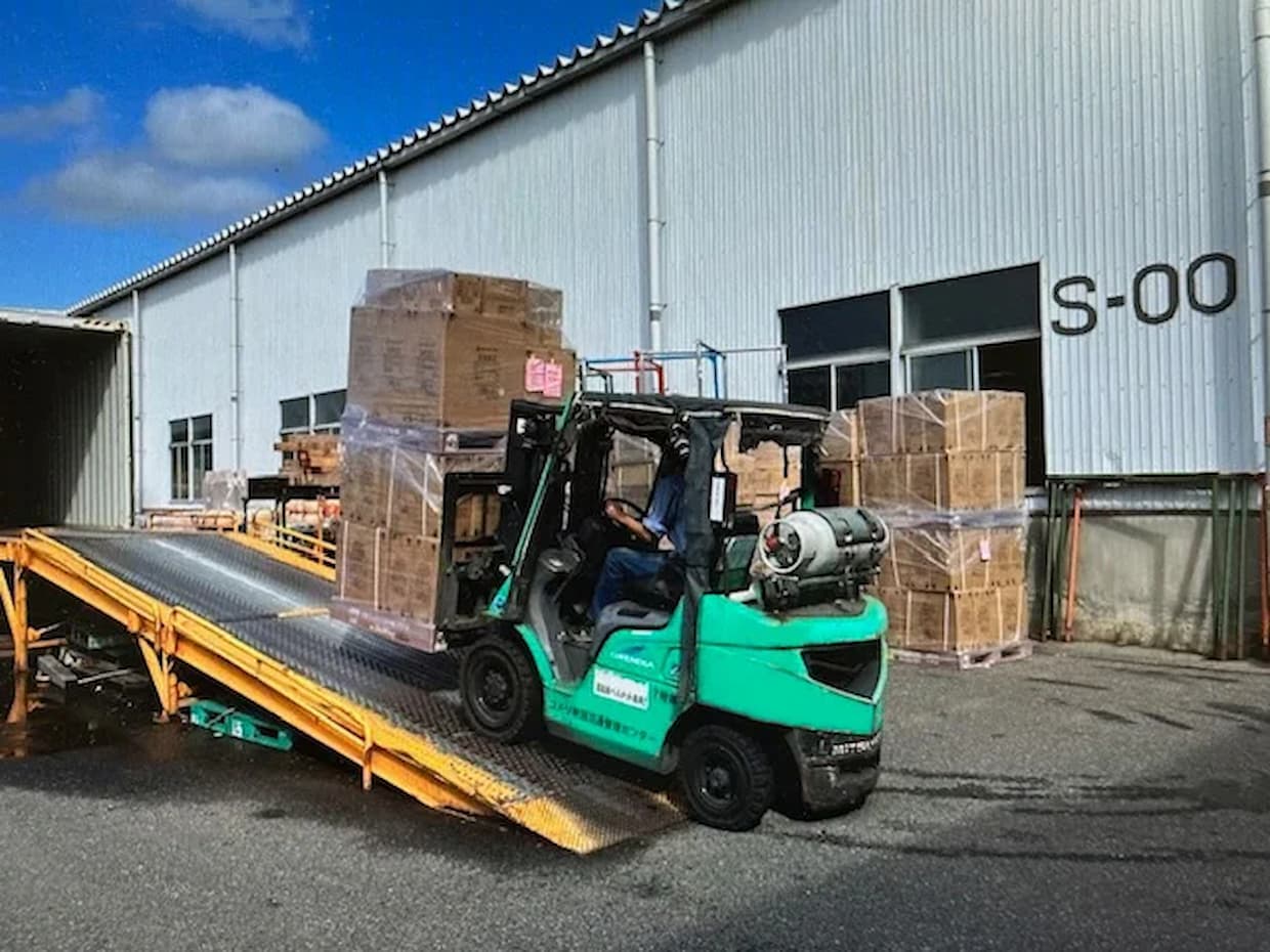 ▲フォークリフトで荷役を効率化(出所:コメリ)