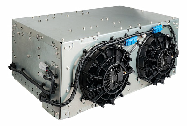 新モジュールは、バッテリーに冷温水を供給する仕組みで、ヒートポンプサイクルやラジエーター、ポンプなどをモジュール化。外気温に応じて冷却方式を切り替え、省エネルギー性も高い。自社調べによると、同等の冷却能力を持つ従来品と比べてエネルギー効率は20%以上向上している。