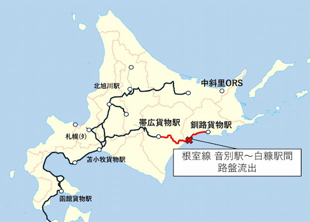 復旧作業は進んでおり、音別-白糠間は27日早朝に運転を再開する見通しだ。これに伴い、同区間を走行する貨物列車も27日から順次運転を再開する予定。一方、トラックによる代行輸送は25日で終了する計画としている。