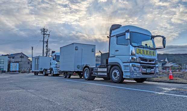 ▲能登半島地震で活躍したトレーラーハウス(出所:トレーラーハウスデベロップメント)