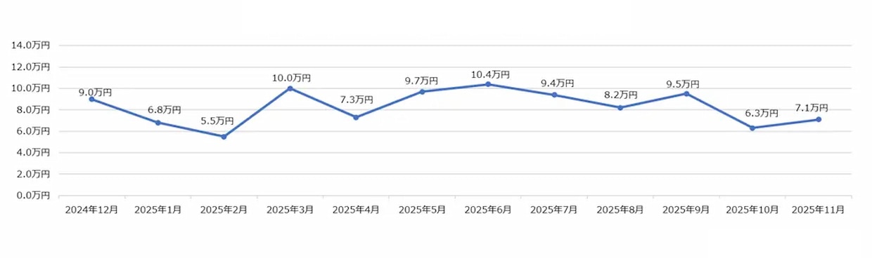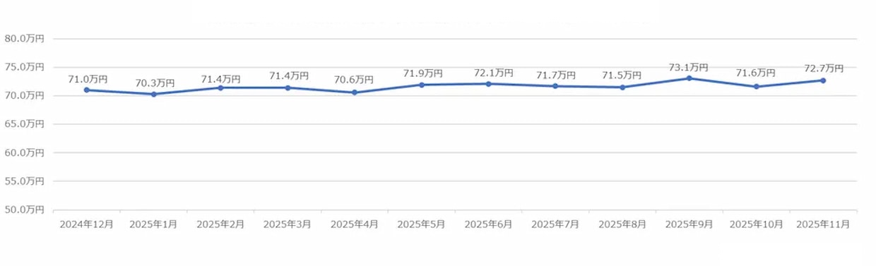 同社によると、11月に転職した人の転職前後の平均年収変動額は全体で7.1万円増となり、前月の調査に比べ0.8万円増だった。このうち転職後に年収増加した人の平均増加額は72.7万円で、同1.1万円増だった。