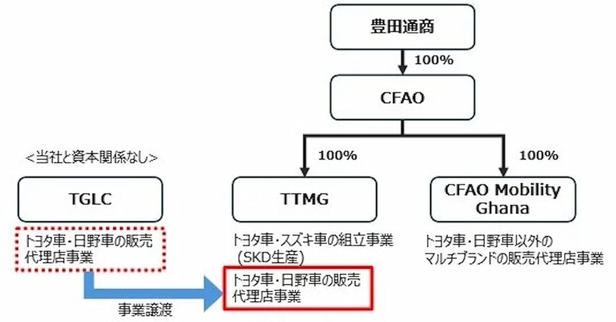 M&A豊田通商は5日、ガーナで子会社CFAO傘下のTOYOTA TSUSHO MANUFACTURING GHANA (TTMG)が、トヨタおよび日野の代理店事業を譲り受けたと発表した。