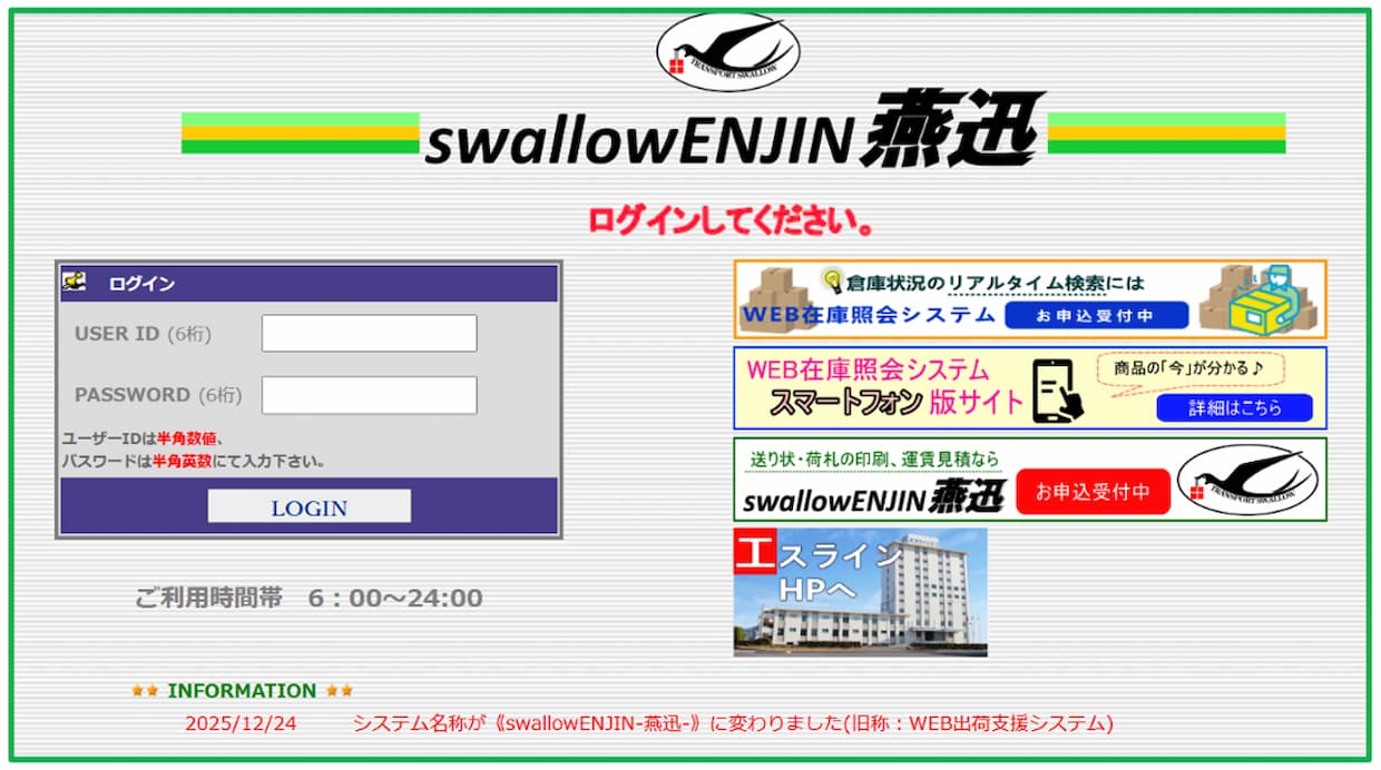 サービス・商品エスライングループ本社(岐阜県岐南町)は5日、出荷業務を支援する「WEB出荷支援システム」の名称を「swallow ENJIN 燕迅」(スワローエンジン)に変更すると発表した。