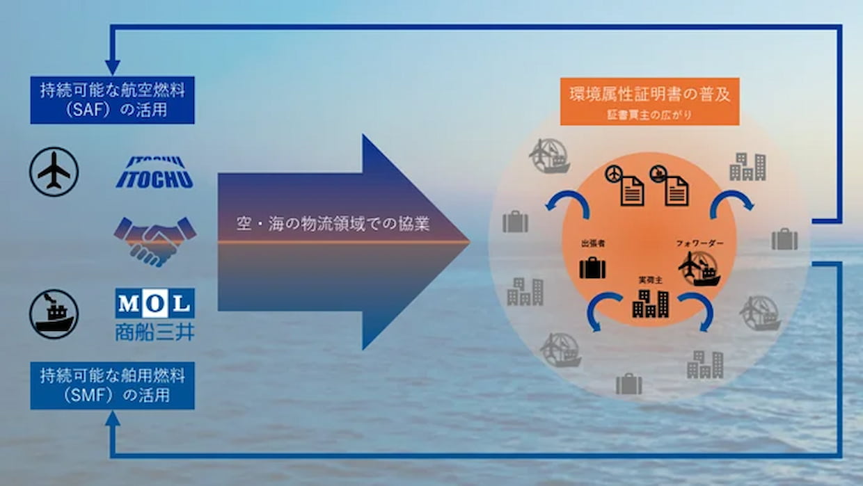 ロジスティクス商船三井は9日、伊藤忠商事と環境属性証明書の活用に関する戦略的提携の覚書を締結したと発表した。運輸セクターにおける脱炭素化推進を目的とし、海運・空運の垣根を越えた協業は国内初の取り組みとなる。