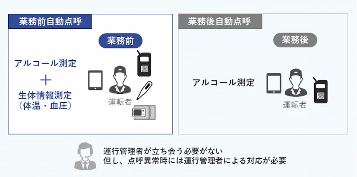 Cagou IT 点呼は、体温や血圧などの生体情報をもとに運転者の健康状態を定量的に把握し、運行の可否を判断するシステムで、対面による点呼と同等の安全性が認められている。今回の制度改正により、従来の営業所や車庫に加え、事業用自動車内、待合所、宿泊施設などでも自動点呼の実施が可能となった。