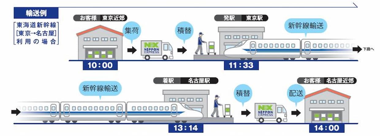 ロジスティクスNIPPON EXPRESSホールディングスは15日、子会社の日本通運と東海旅客鉄道(JR東海)が、新幹線を利用した即日貨物輸送サービス「NXスーパーエクスプレスカーゴ」をJR東海エリアで開始した。東海道新幹線の荷物輸送サービス「東海道マッハ便」「東海道超(ウルトラ)マッハ便」と連携し、東京-名古屋-新大阪を結ぶ広域即日輸送ネットワークを構築する。