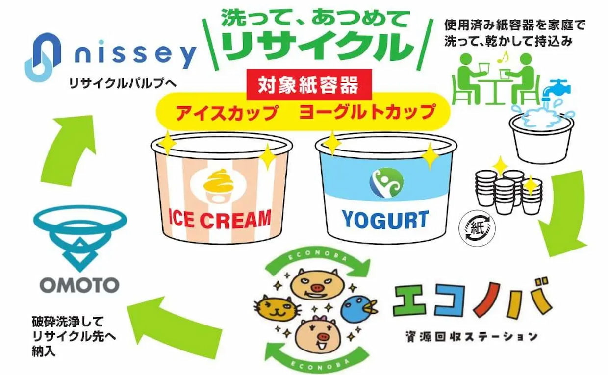 紙コップ市場のリーディングカンパニーである東洋製缶グループホールディングス(GHD)と、そのグループ会社である東缶興業(東京都品川区)は、紙コップのリサイクルに関する検証を続け、まさに「その先」を歩き続けている企業だ。使用済み紙コップを回収し、再資源化につなげる実証を全国各地で積み重ねてきたが、2025年12月からは神戸市の資源回収拠点「エコノバ」を活用し、アイスクリームやヨーグルトで使用される紙製食品容器を市民が“洗って持ち込む”回収モデルの実証も開始した。