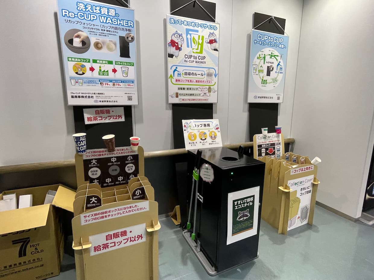 ▲東洋製罐グループ本社に設置されている紙コップ洗浄・回収ステーション