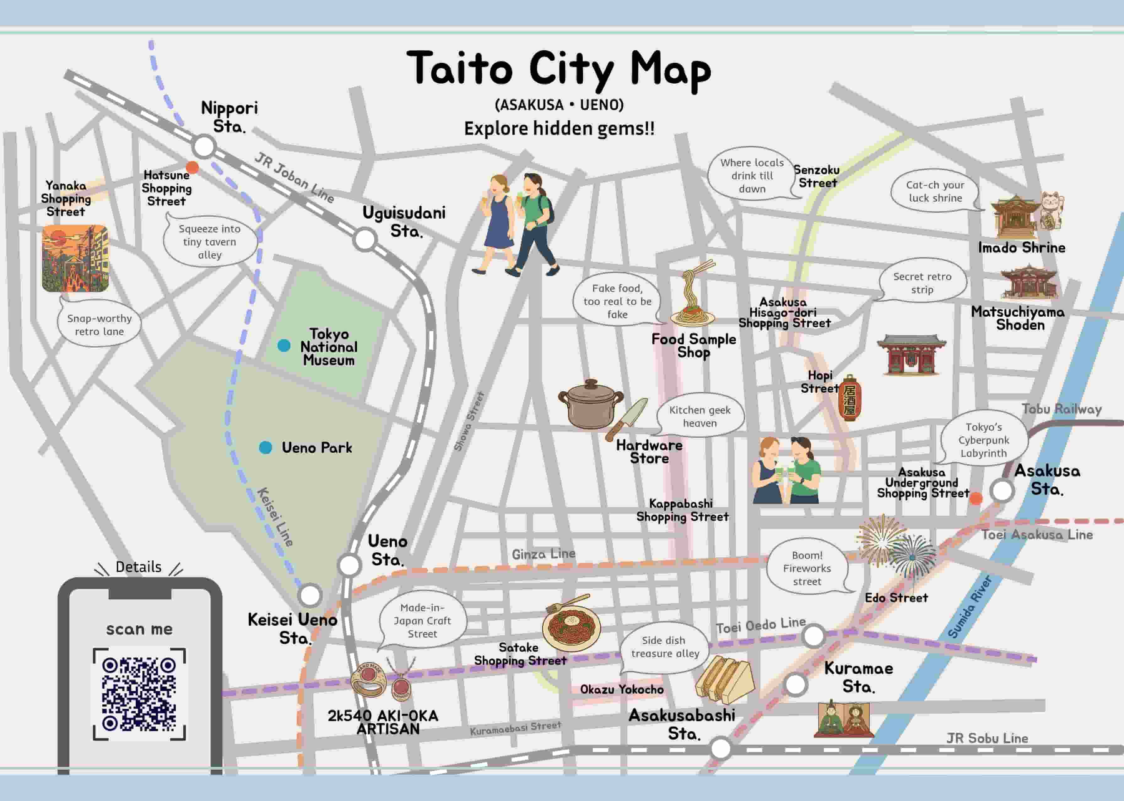 ▲浅草以外の名所、見どころがわかる地図を渡し、観光客の回遊を狙う(出所:波屋)