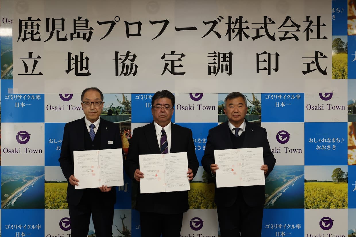 フード鹿児島県はこのほど、鹿児島プロフーズ(鹿児島県いちき串木野市)、大崎町と立地協定を締結し、同社が大崎工場内に食品用エキス製造の新プラントを増設すると発表した。投資額は20億円で、1月に着工し、10月の操業開始を予定する。