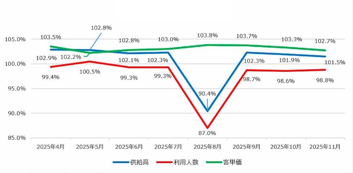 宅配事業(2025年4-11月)は、利用人数が前年比97.7%と減少したものの、値上げによる利用単価の上昇(103.1%)で受注高は100.5%と前年水準を維持した。戸別訪問による加入が減少し、夏季一斉休業後の利用人数低下も影響した。対策として、宅配センターの業務標準化による生産性向上や、デジタルツール活用、営業専門部署の設置など新たな加入経路の開拓を進める。