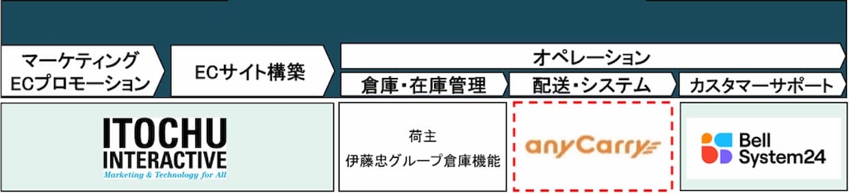 今回の提携では、エニキャリの即時配送サービスやラストマイルDX機能と、伊藤忠商事グループが持つBPOやEC構築支援の機能を組み合わせ、受注管理からカスタマーサポート、倉庫・在庫管理、配送までを一括で担うワンストップ型フルフィルメントサービスの提供を目指す。