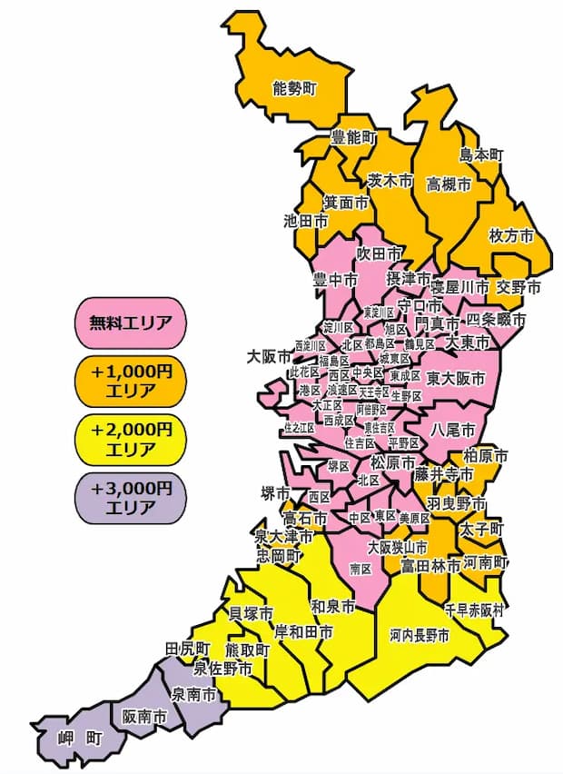 ▲大阪のエリア別宅配料金表(クリックで拡大、出所:PeeLine)