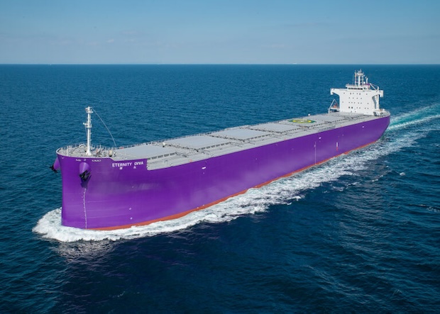 ▲パナマックス型ばら積み貨物船「ETERNITY DIVA(善永)」(出所:新来島サノヤス造船)