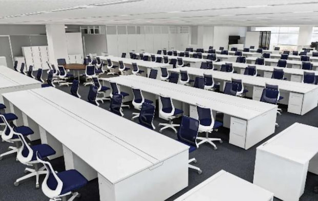 新拠点では2フロアを活用し、常時150人が就労可能な環境を整備。共用スペースを設けることで、打ち合わせや部門横断の連携を促進する。