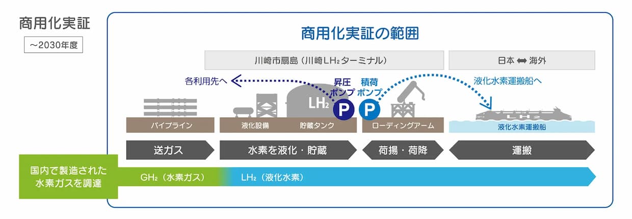 受注したのは、貯蔵タンクから各利用先へ供給する昇圧ポンプ5台と、液化水素運搬船への積み込みを担う積み荷ポンプ1台。いずれも超電導モーター搭載型を採用し、大流量かつ高効率な移送を可能にする。超電導モータは極低温環境で電気抵抗がゼロとなり、発熱を抑制できるため、液化水素の気化ロスを大幅に低減できる点が特長だ。