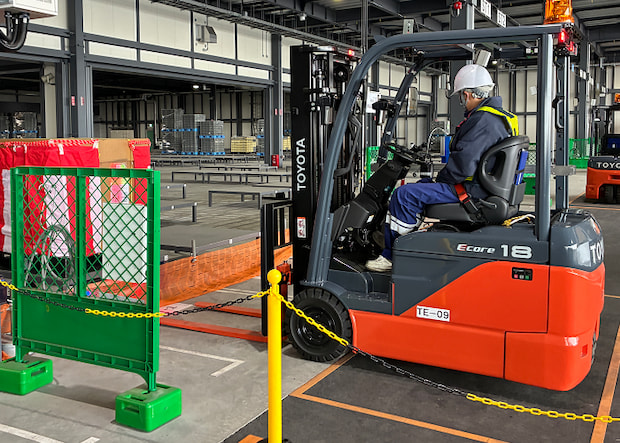 同社は増産に向けて生産設備を強化してきたが、従来の構内物流では受入・出荷スペースや搬送能力の制約が課題となっていた。新設した納入センターでは、部材搬入を集約し平準化運搬を行うことで、将来的な物量増加にも対応できる体制を構築した。