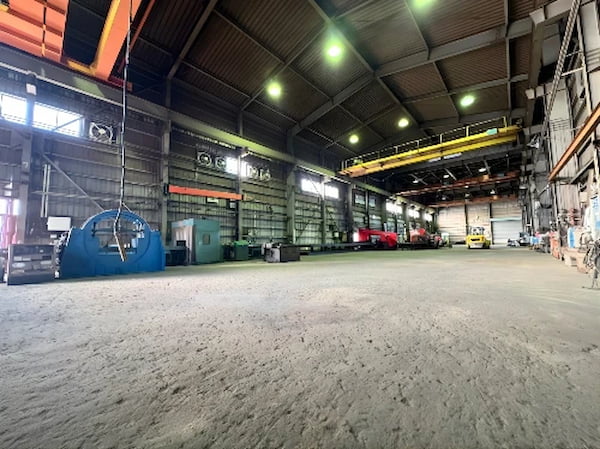 設備面では大型H形鋼の一次加工に対応し、切断などの初期工程から溶接、塗装、出荷までを一貫処理できる体制を整えた。熟練技術者による高精度加工を強みに、リードタイム短縮と柔軟な生産対応を両立させる。