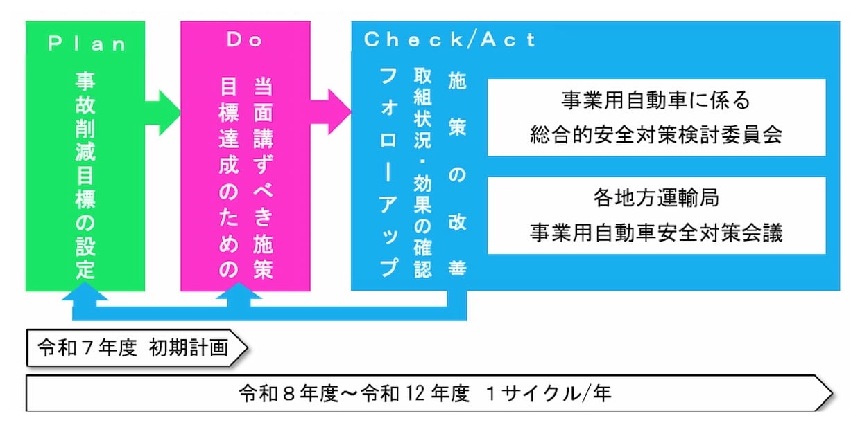 荷主側を含む「安全トライアングル」の定着も掲げ、無理な行程設定、長い手待ち、頻繁な経路変更、過度な値下げ要求が過労運転や安全投資の抑制につながり得るとの問題意識を示した。優良事業者を利用者が選べるよう、安全情報の分かりやすい提供も求めた。計画はPDCAに沿って毎年フォローアップし、地方運輸局などの会議体とも連携して進ちょくと効果を検証する。