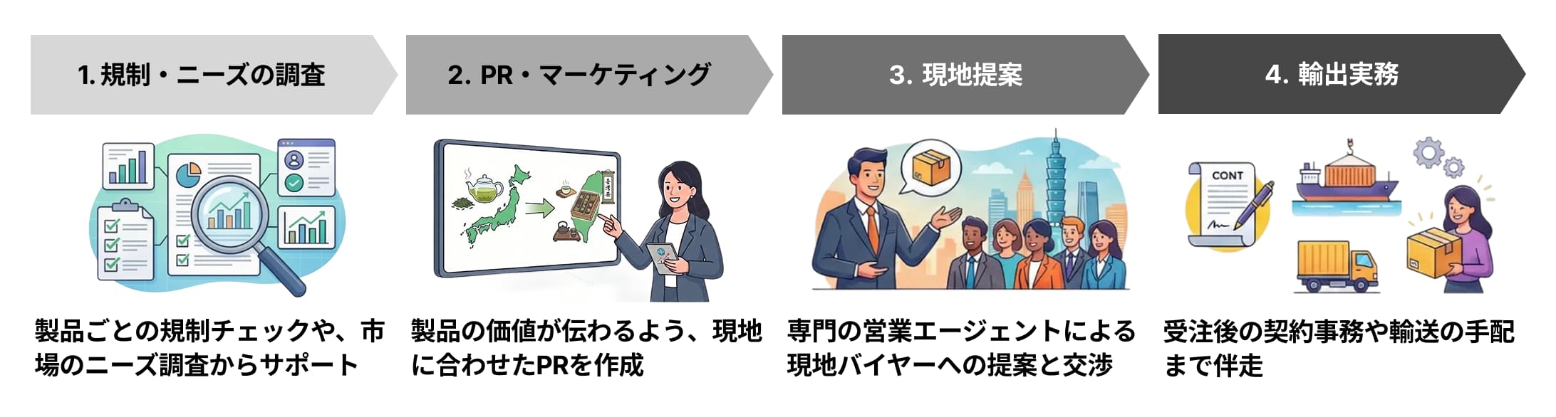 月額10万円。この価格を支えるのは、IT技術による徹底した効率化だ。「個人が手弁当でやる輸出コンサルはある。だが、会社として仕組みに落とし込んだ例は少ない」と加藤氏。自動化できる部分は機械に任せる。人の手が離れた分、価格は下がり、良品が海を渡る。「ITで仕組み化する」と、加藤氏の発想は明快だ。市場分析、翻訳、規制情報の整理。かつて人海戦術だった作業を、テクノロジーが肩代わりする。