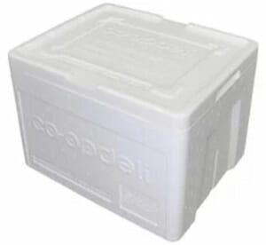 ▲リサイクル原料を導入した宅配用保冷容器(出所:コープみらい)