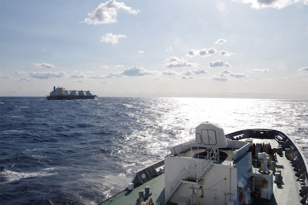 ▲「ENERGY ADVANCE」から見た「あきつしま」(出所:商船三井)
