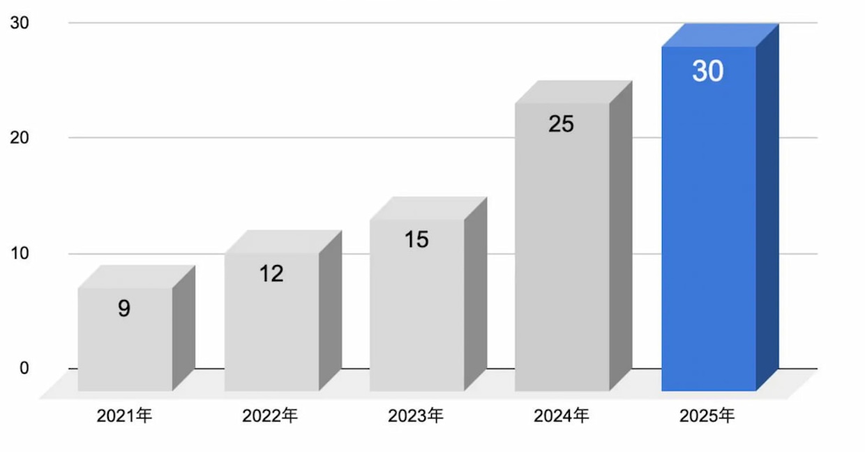 施工実績の増加とともに、同社への問い合わせ件数も21年の9件から25年には30件と3.3倍に増加した。背景には、リチウムイオン電池や化学品の保管需要拡大、災害リスクへの備え、施設の老朽化対応などがある。防火区画や耐火構造、換気・排煙設計などへの柔軟な対応も評価されている。