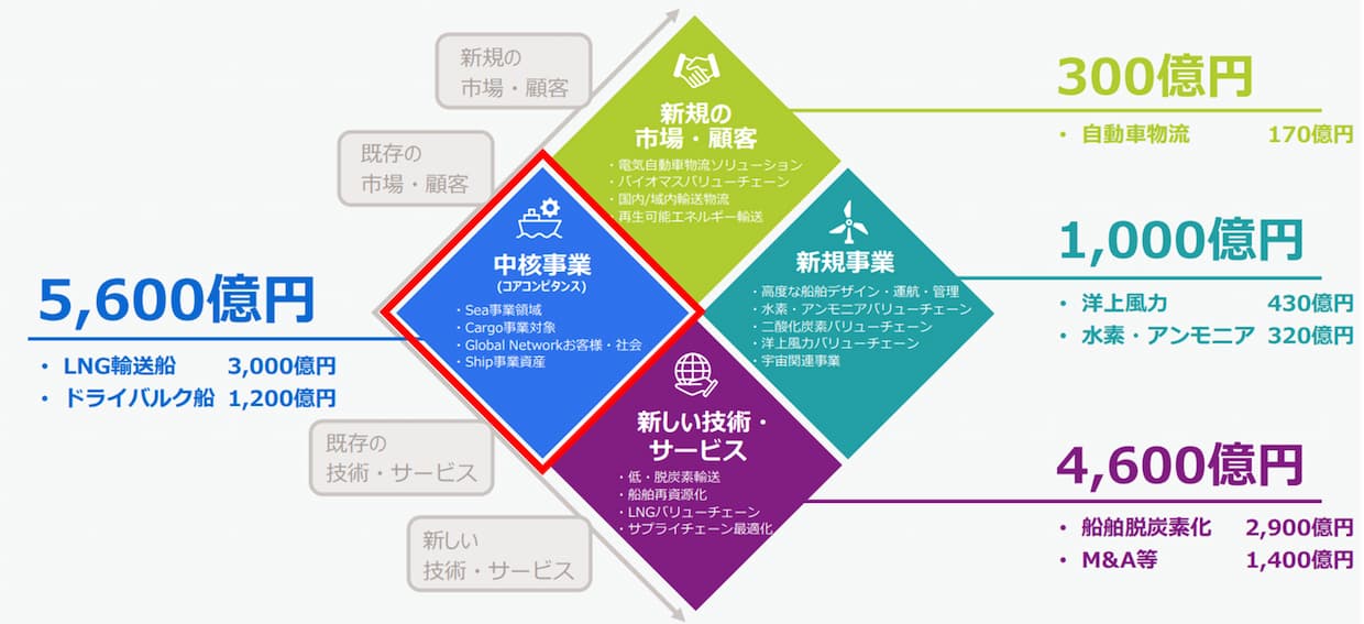 ▲日本郵船グループが中期経営計画で定める事業投資方針(出所:日本郵船)