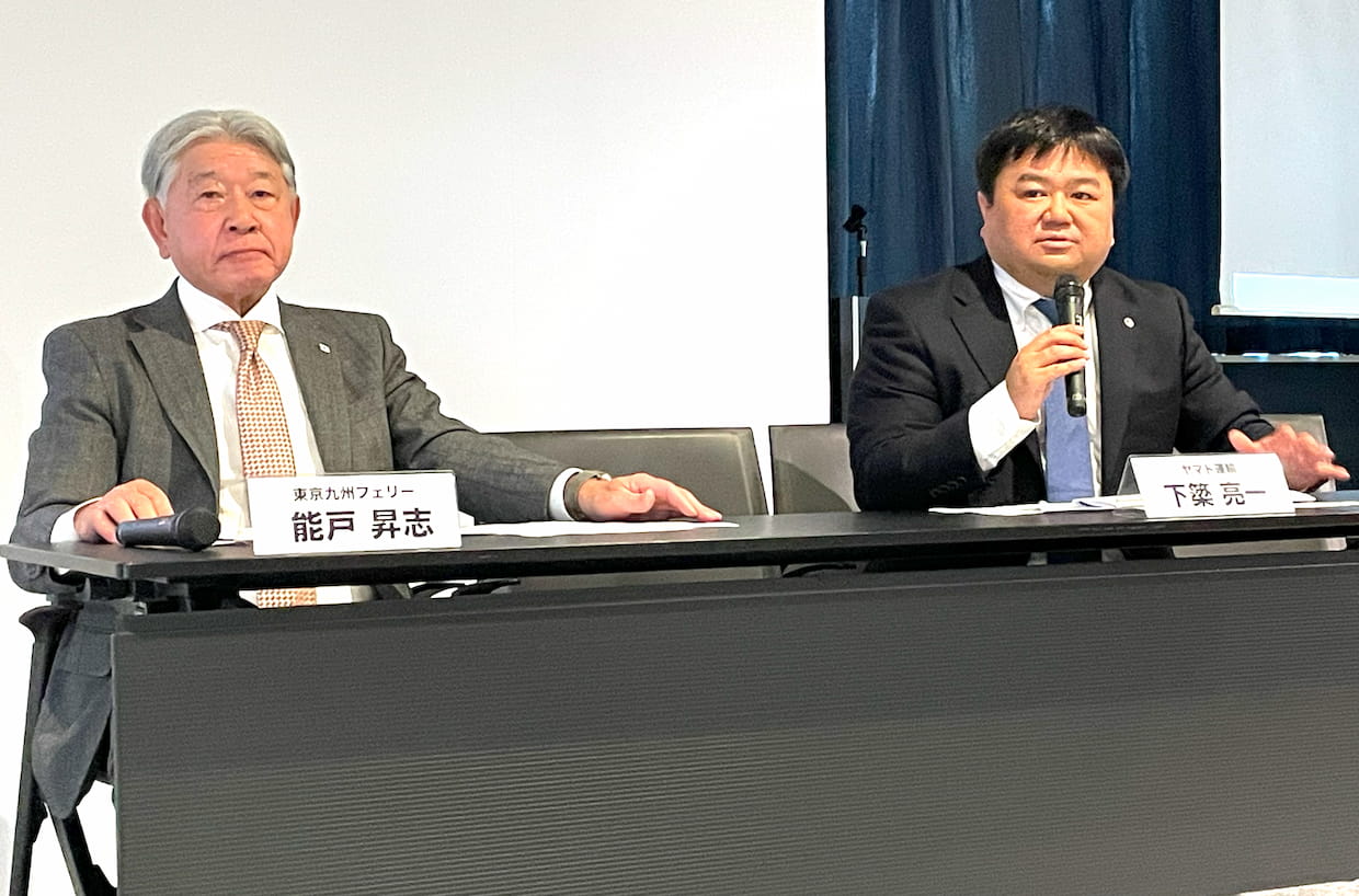 ▲(左から)東京九州フェリーの能戸昇志氏、ヤマト運輸の下簗亮一氏