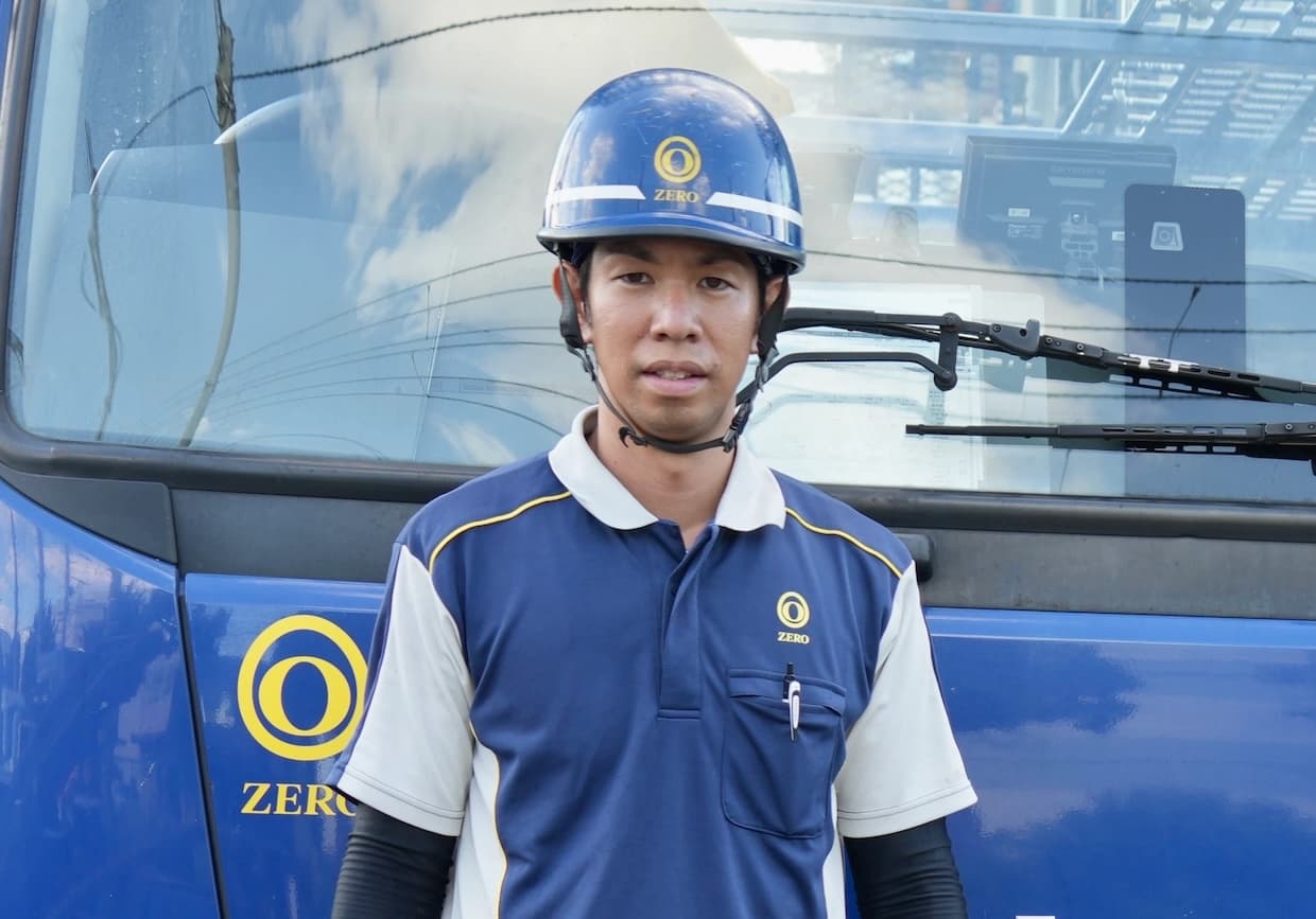 ロジスティクスゼロは、若年層採用制度を通じて未経験人材をドライバーとして育成する取り組みを進めている。千葉カスタマーサービスセンターに所属する中村ドライバーは、トラック・バス部品メーカーの営業職から転身し、普通免許から大型免許を取得してキャリアカードライバーとして独り立ちした一例だ。