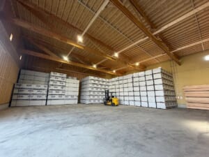 木材特有の湿度や温度の影響を受けやすい性質に対しては、カビ発生防止のため温湿度管理体制を整備。施設全体の密閉性や汚れの付きにくさも含め、木材保管に適した条件を確保している。