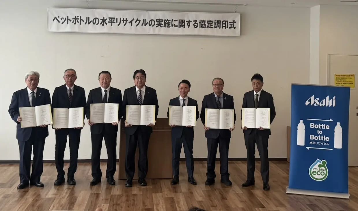 荷主協栄産業(栃木県小山市)のグループ会社ジャパンテック(鹿沼市)は13日、中富良野町、富良野市、南富良野町、占冠村、アサヒ飲料、ペットリファインテクノロジーと「ペットボトルの水平リサイクルの実施に関する協定書」を9日に締結したと発表した。家庭から回収した使用済みPETボトルを新たなPETボトルへ再生するボトルtoボトルの取り組みを推進する。