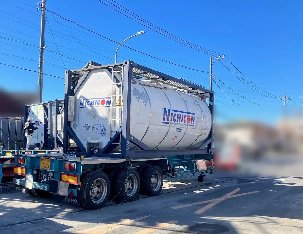 これを受け、日本コンセプトは薬剤の性状や安全性を踏まえ、現場条件に適したタンクコンテナの配置計画と運用体制を設計。1基あたり容量25トンのタンクコンテナを4基現場に配置し、貯蔵・供給体制を構築した。年末年始を含む長期間にわたり、継続供給が可能な体制を無臭元工業と共同で実装している。