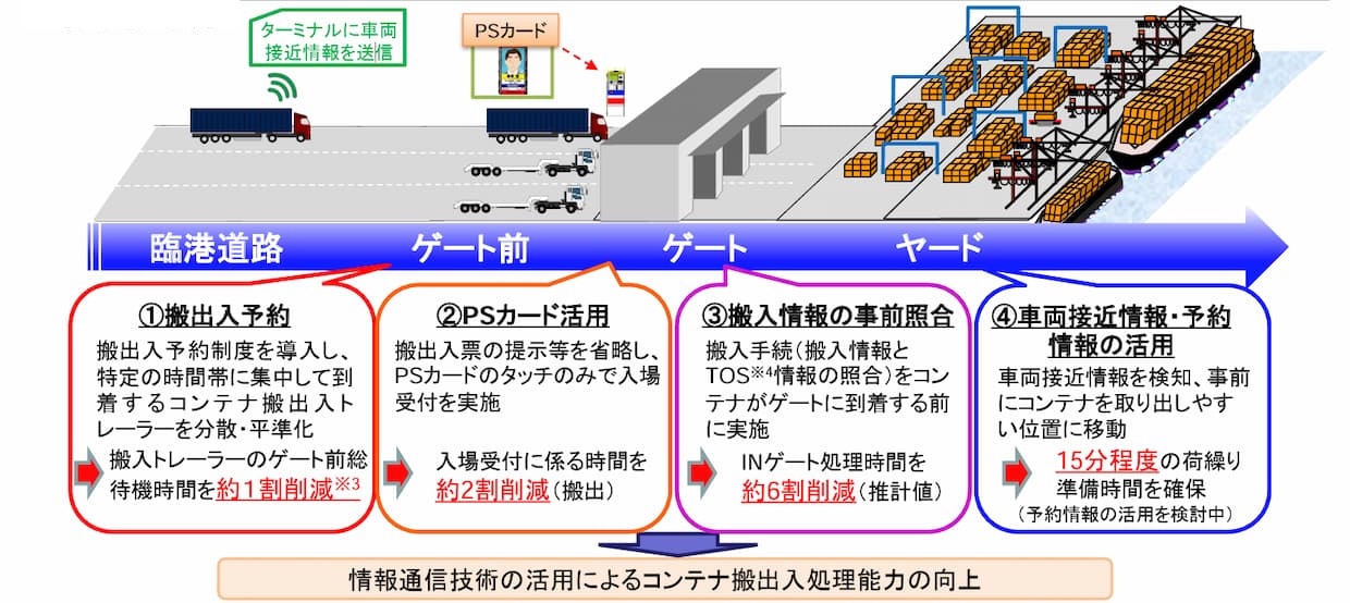 行政・団体国土交通省関東地方整備局は18日、横浜港本牧ふ頭BCコンテナターミナル(BC2ゲート)において、コンテナ搬出入予約システム「CONPAS」の試験運用を3月2日から6日までの5日間実施すると発表した。次年度早期の常時運用を見据え、BC2ゲートで搬出入する全コンテナを対象に「原則予約制」を導入する。