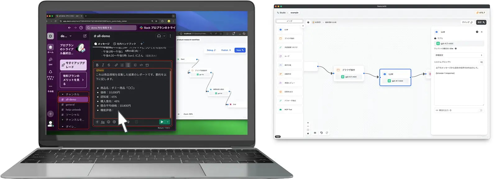SamuraiAIは、あらかじめ詳細なシナリオを組む必要がある従来型RPAとは異なり、業務全体を理解したうえで実行する「働くAI」を掲げる。調査や資料作成といった単発業務にとどまらず、複数工程にまたがる業務プロセスを一貫して自動化できるとしており、物流とITの両面を事業領域とする関通にとって適合度は高い。