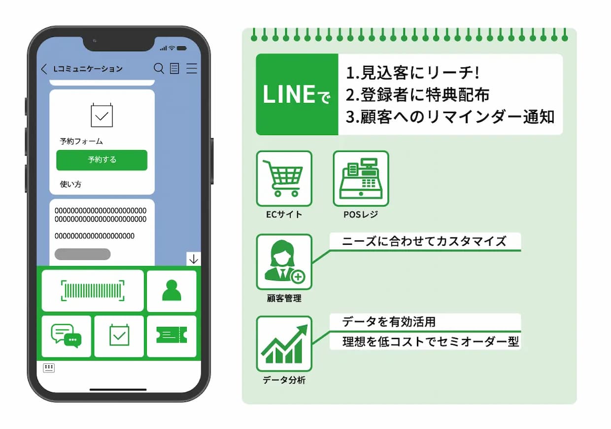 同サービスは、フルスクラッチ開発と比べて導入コストや期間を抑えつつ、将来的な機能拡張や外部システム連携に対応できる設計とした。CRMやMA、POS、EC(電子商取引)など既存の基幹システムと連携することで、LINEを起点とした業務フローの構築を支援する。また、定期投稿の代行や月次レポート作成など、人による運用支援を組み合わせられる点も特徴で、現場負担の軽減を狙う。