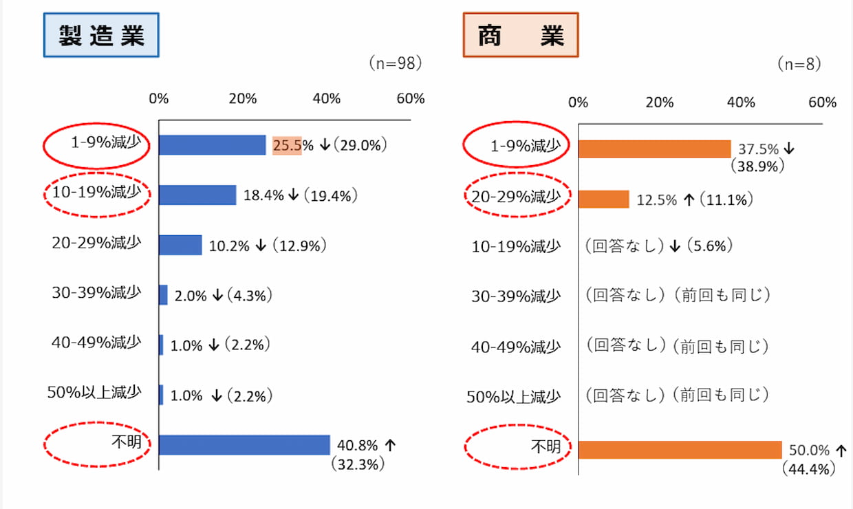 一方、商業は同割合が7.5%で、前回から9.3ポイント減少した。期待する支援策は、製造業では「販路開拓支援」(32.7%)、商業では「資金繰り支援」(25.0%)が最多だった。