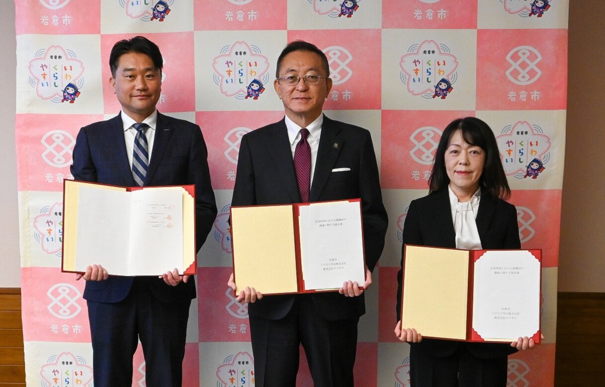 本協定は、岩倉市内で大規模地震や風水害などの災害が発生した際、市の要請に基づき、トラスコ中山が保有する災害支援物資や各種資機材を迅速に提供する体制を構築するもの。クマザワを通じて被災地へ供給する。