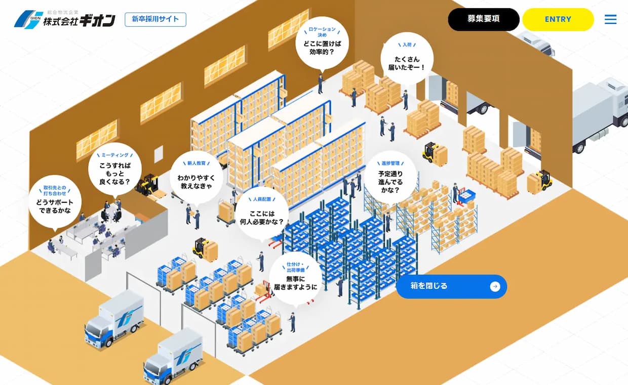 新サイトでは、社員インタビュー「GION PEOPLE」や「先輩のホンネ」など働く人に焦点を当てたコンテンツを拡充。物流センター内業務を紹介する「物流センターの仕事 大解剖!」や、社内キーワードを切り口にしたコンテンツも新設した。また、「データで見るギオン」として拠点数や従業員数などの基礎情報を整理し、企業概要を分かりやすく掲載した。同社は3PL事業を主軸に、全国100拠点以上を展開している。