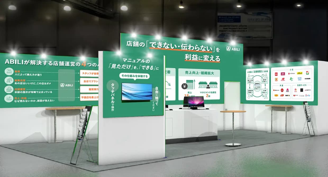 ブースでは、実際の操作画面を体験できるタッチパネル式のセルフデモ機を設置するほか、業種別の導入事例や多拠点ビジネスにおける具体的な活用ケースを展示する。多拠点展開企業で課題となる拠点間の売上や顧客体験、従業員満足度のばらつきの是正に向けた取り組みを提示する。