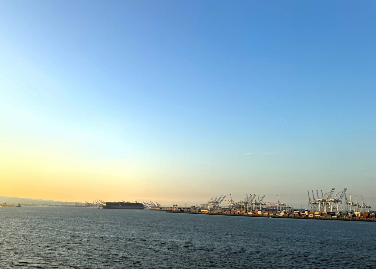 26年はこの流れが止まっている。1月以降のスポット運賃は20%以上下落し、米西岸向けで1700-1800ドル台に落ち込んだ時期もあった。大量の新造船就航で供給が膨らむ一方、米国の輸入需要は鈍い。ロサンゼルス港の1月の取扱量は81万2000TEUと前年同月比12%減で、同港が「3年近くで最低の月間処理量」とした水準だった。