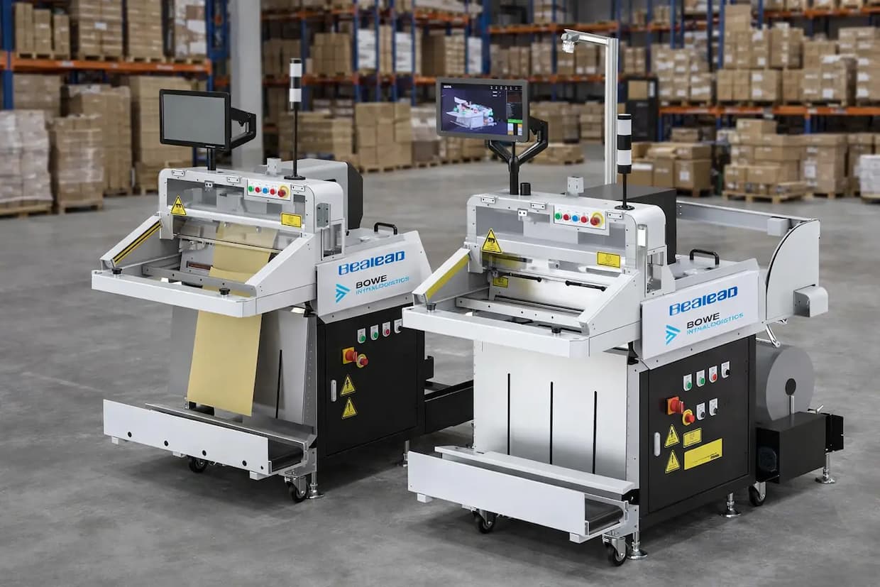 展示するのは、紙袋用の「BL-PA100」とフィルム袋用の「BL-506E+」の2機種。通販・EC、アパレル、雑貨などの出荷梱包作業の効率化を目的とした装置で、伝票スキャン、商品投入、ボタン操作の3ステップで袋詰めが完了する。