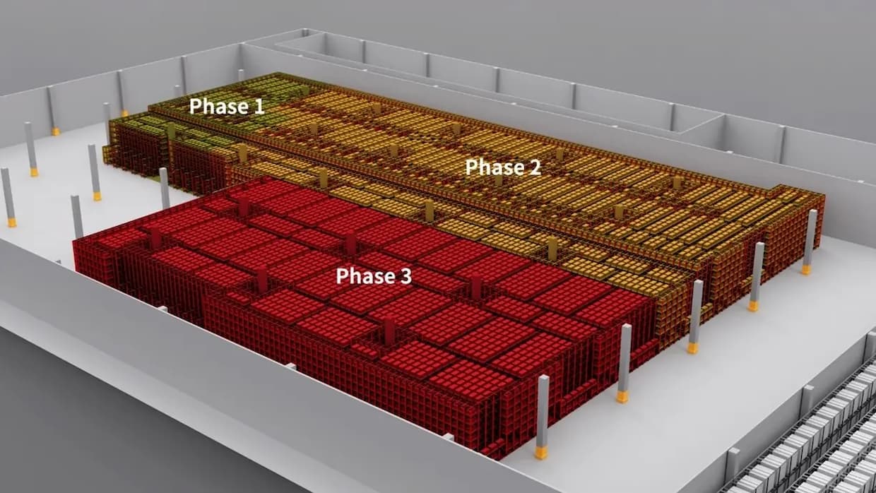 今回導入するラピュタASRSは、稼働中の物流センターでも業務を止めずに段階的に設置・拡張できる点が特徴。フェーズ1-3の3段階で導入を進め、現場のオペレーションを継続しながら自動化を拡張する計画とする。