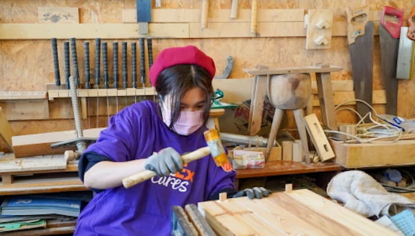 ▲寄付されたパレットを加工する職人(出所:フェデックス)