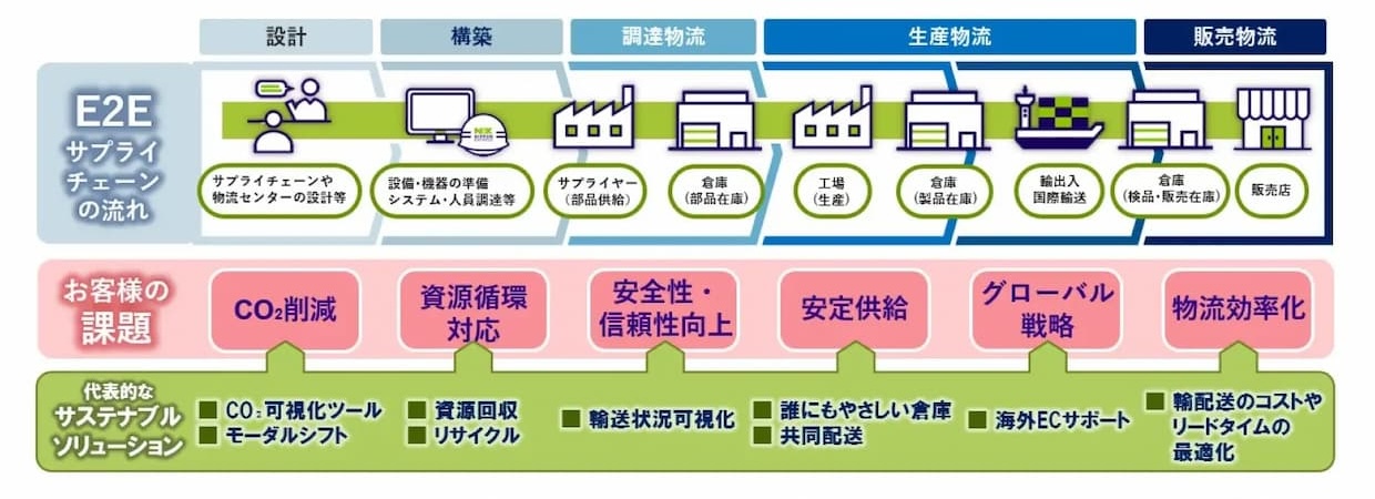 NXグループは原材料調達から最終配送までのエンド・ツー・エンド物流を対象に、サステナブルなサプライチェーン構築を支援するソリューションを拡充する。